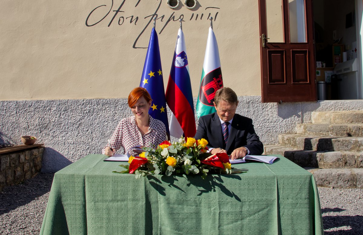 Župan Občine Črnomelj Andrej Kavšek je danes skupaj z ministrico za kulturo dr. Asto Vrečko v Vinici podpisal pogodbo o obnovi Spominske hiše Otona Župančiča.