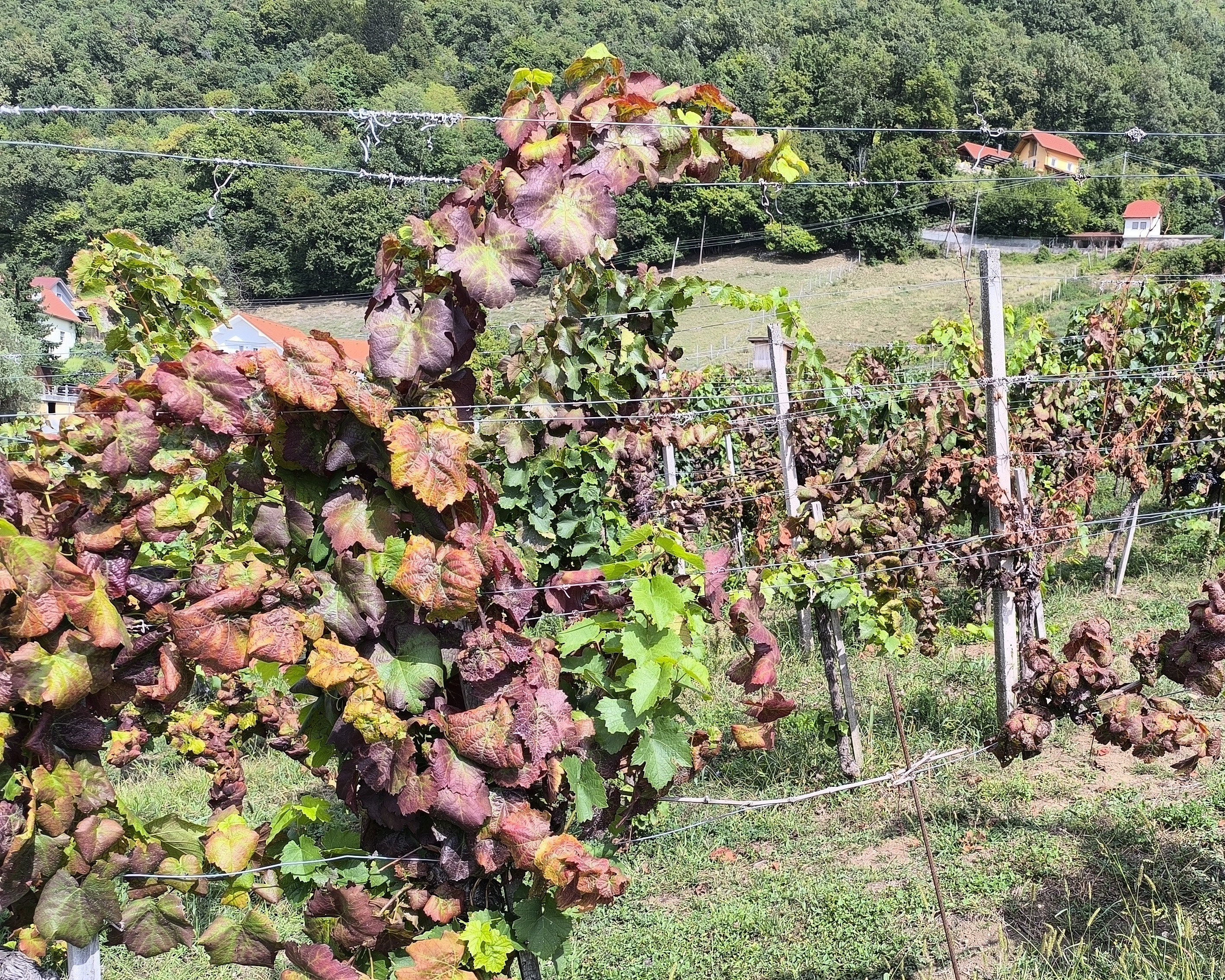 Trte okužuje ameriški škržatek (Scaphoideus titanus). Ameriškega škržatka se zatira z insekticidi. Na varovalnem območju jih je bilo potrebno v letu 2025 obvezno uporabiti 3-krat. Če imetnik sam spremlja ulov odraslih škržatkov z rumenimi lepljivimi ploščami in so po 2. tretiranju ulovljeni manj kot 4 škržatki na eno ploščo na teden, 3. tretiranja ni treba opraviti. Zelo pomembna je pravočasna uporaba pripravkov, pravilna izbira in pa tudi sam način aplikacije (pravilen odmerek, količina vode,…).