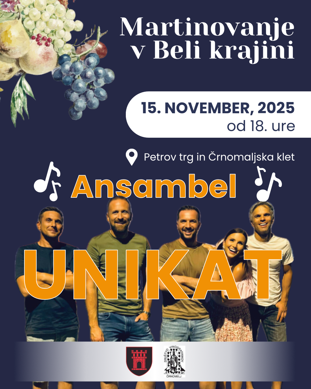 Obveščamo vas, da bo zaradi izvedbe tradicionalne prireditve Martinovanje v Beli krajini 2025, ki bo v soboto, 15. 11. 2025, od 18. ure naprej na Petrovem trgu v Črnomlju, zaprta mestna lokalna cesta ulice Lojzeta Fabjana in ulice Mirana Jarca v Črnomlju (od semaforiziranega križišča do Cerkve sv. Petra).