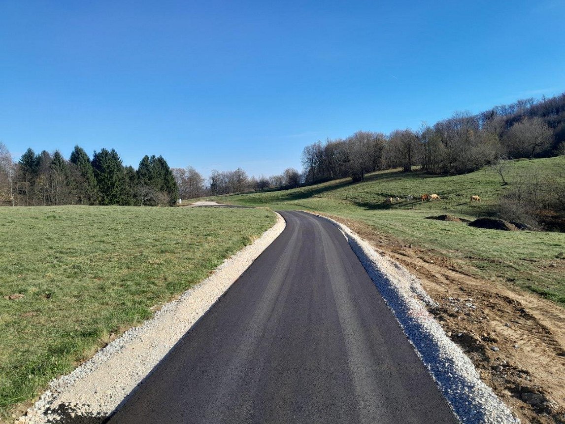 Po pogodbi za Gradnje na občinskih cestah in objektih v letih 2025-2026 smo kot zadnji projekt letos izvedli obnovo 330 m dotrajane asfaltne javne poti JP 555881 proti naselju Gorica in za 46 m podaljšali asfalt JP 555882 do konca klanca proti vodohranu in antenskemu stolpu mobilnega omrežja Gorica.