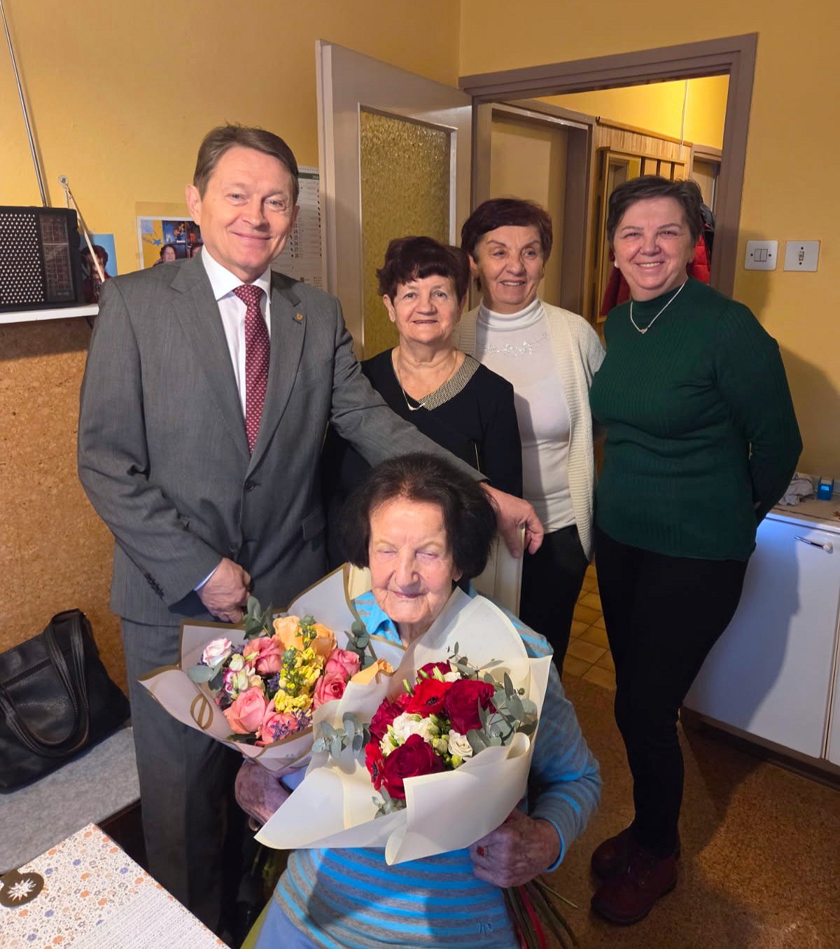 Župan je slavljenki ob visokem življenjskem jubileju izročil šopek ter ji v imenu občine zaželel obilo zdravja in mirnih dni.