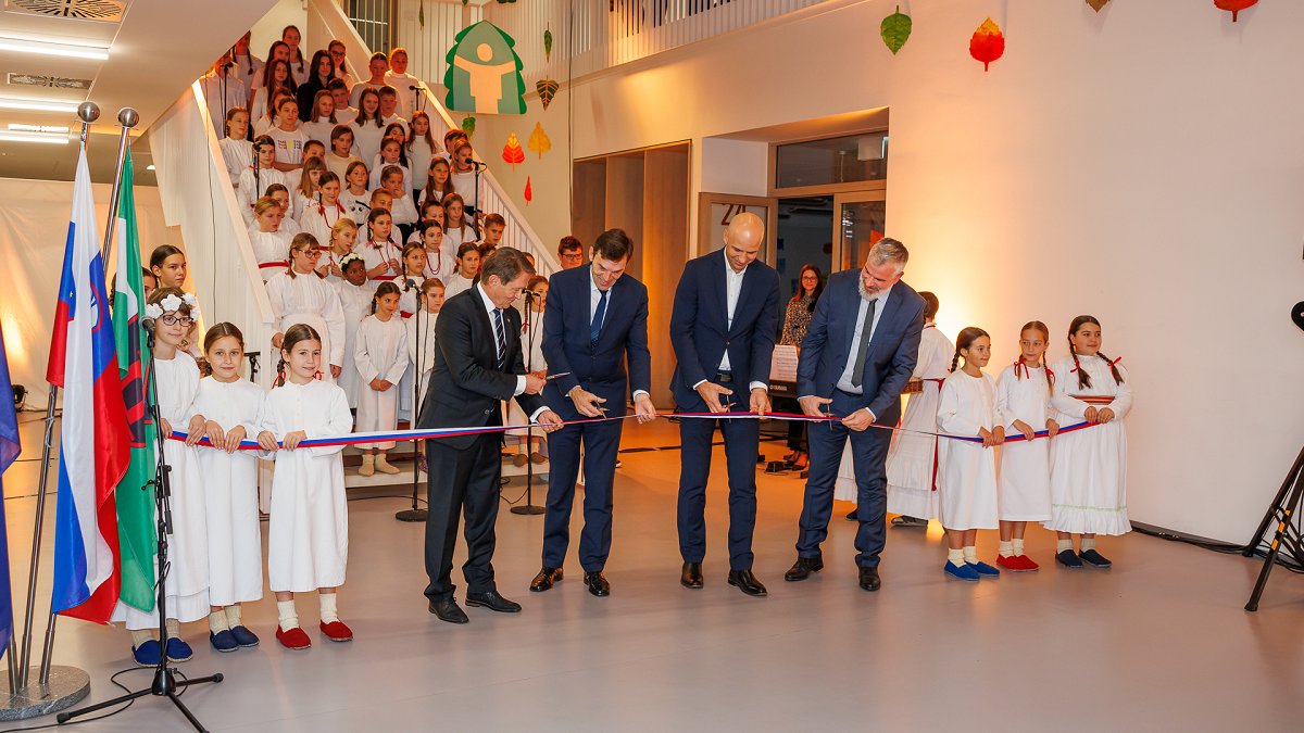 Četrtek, 21. november 2024 - Novo Osnovno šolo Loka v Črnomlju, ki je največja investicija v šolstvo v občini in ena največjih v državi, so včeraj slavnostno s prerezom traku predali namenu župan Občine Črnomelj Andrej Kavšek, ravnatelj OŠ Loka Boštjan Papež, minister za vzgojo in izobraževanje dr. Vinko Logaj in predsednik uprave CGP Martin Gosenca. Odprtje so s kulturnim programom popestrili učenci OŠ Loka, slavnostni nagovor ob tem zgodovinskem trenutku je imel minister, zbrane pa sta nagovorila tudi ravnatelj in župan.