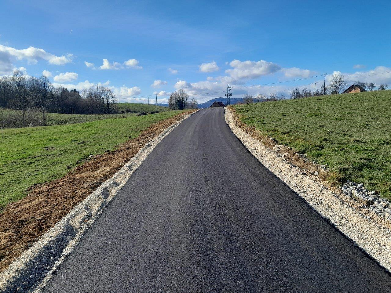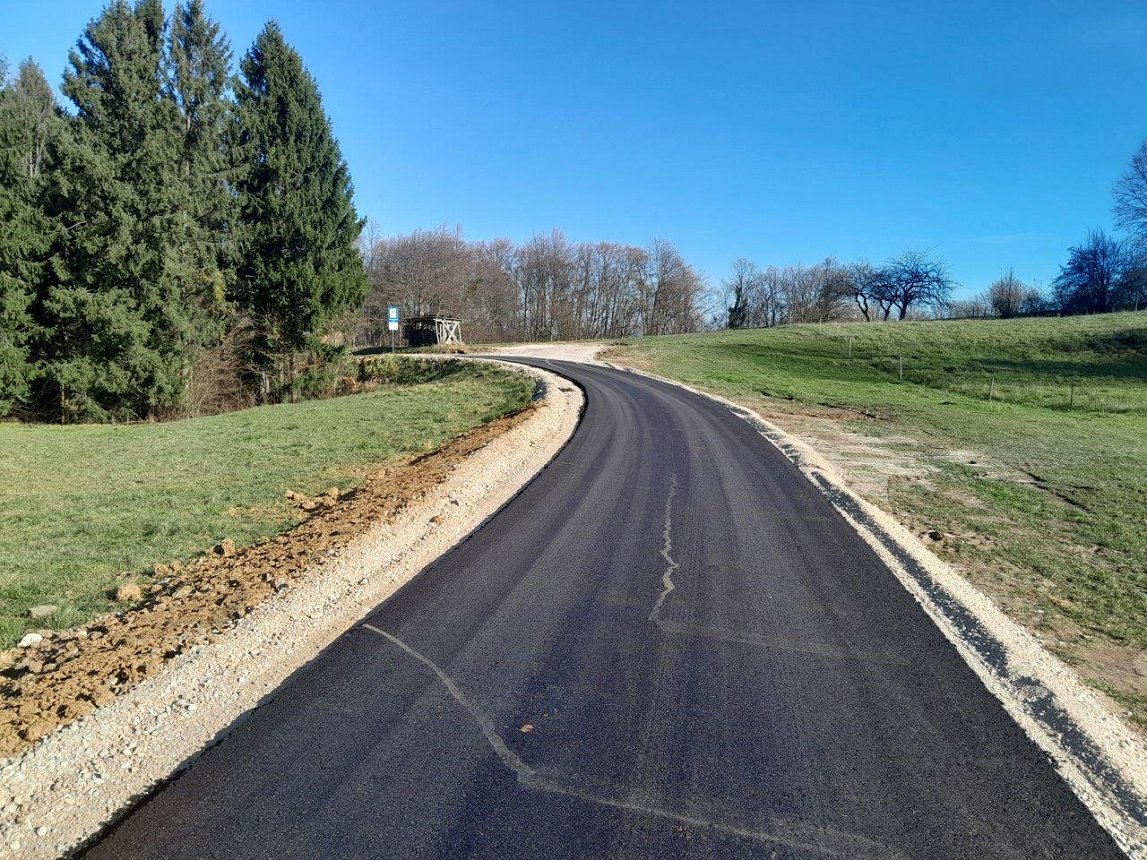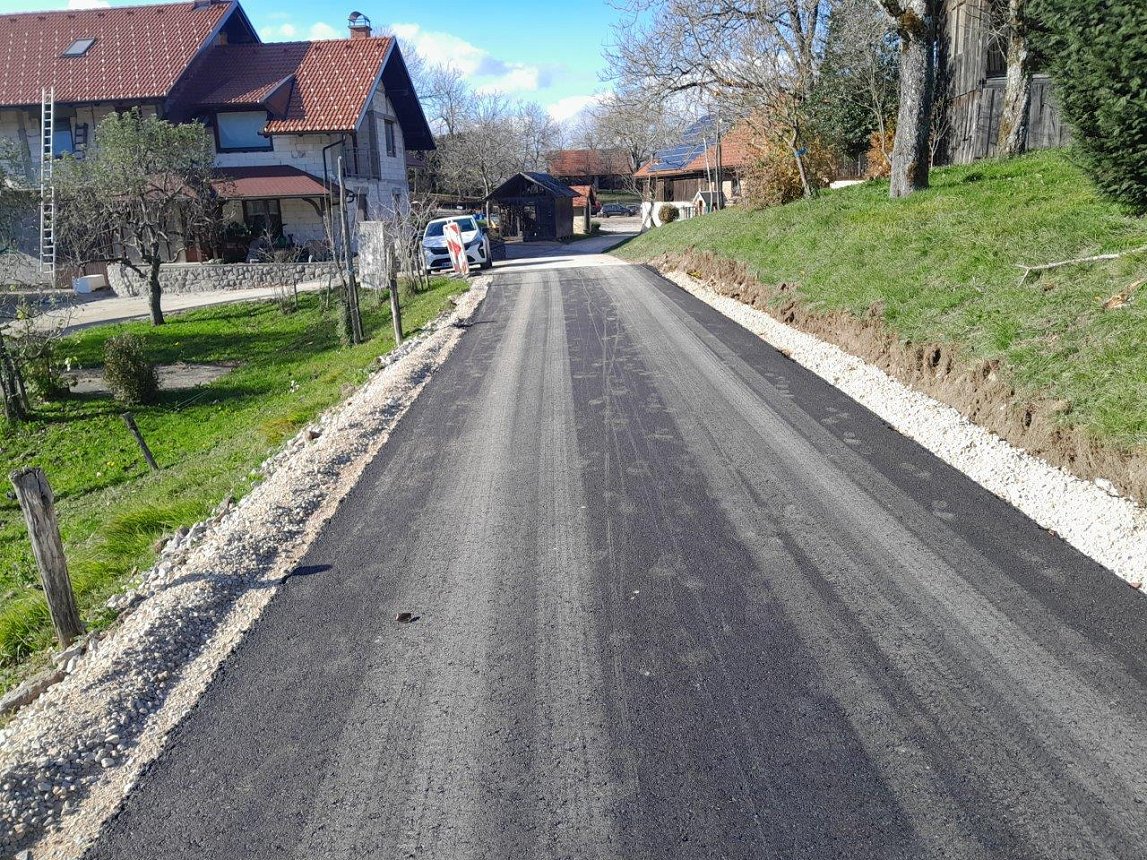 Po pogodbi za Gradnje na občinskih cestah in objektih v letih 2025-2026 smo kot zadnji projekt letos izvedli obnovo 330 m dotrajane asfaltne javne poti JP 555881 proti naselju Gorica in za 46 m podaljšali asfalt JP 555882 do konca klanca proti vodohranu in antenskemu stolpu mobilnega omrežja Gorica.