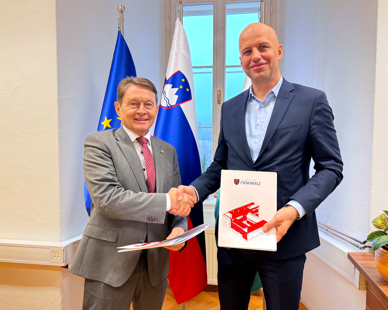 Župan občine Črnomelj Andrej Kavšek je s predsednikom uprave podjetja CGP d. d. iz Novega mesta, Martinom Gosenco, podpisal dve pogodbi za dela v letošnjem letu.