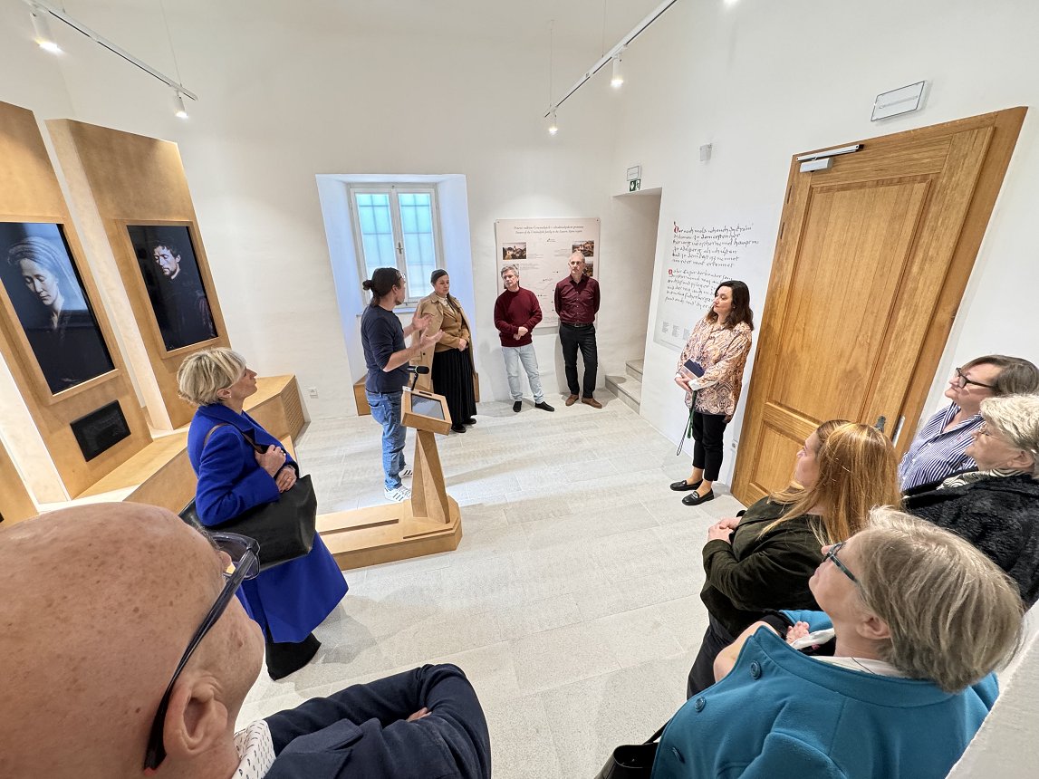 V nadaljevanju srečanja je vse zbrane po prenovljenem gradu in po zbirki Branilci krone in meja popeljal avtor zbirke dr. Janez Weiss.